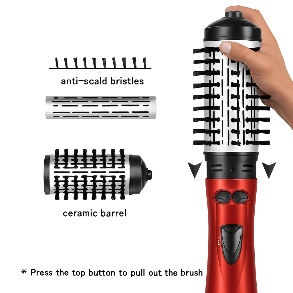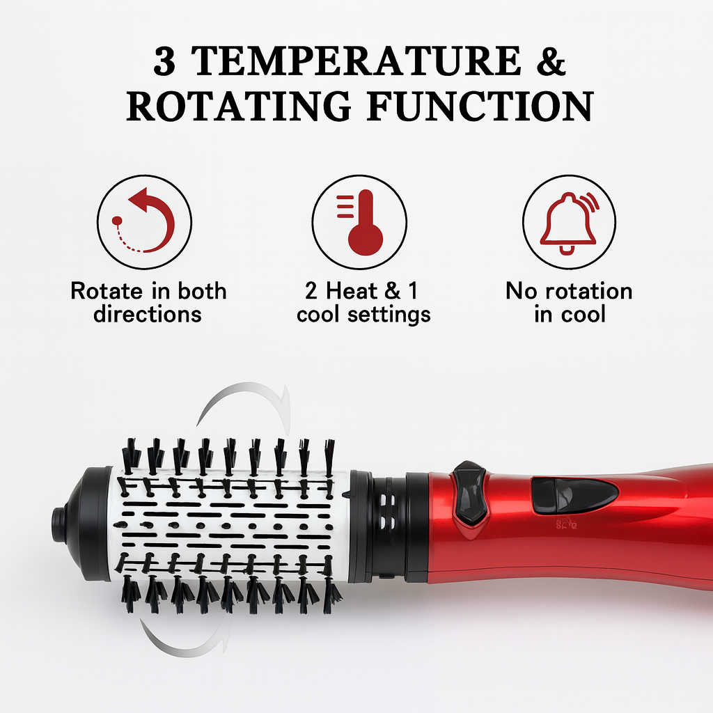 Say goodbye to juggling multiple tools and struggling with tangled cords. With its ergonomic design, dual brush attachments, and intelligent heat settings, this hot air brush adapts to your needs. Perfect for all hair types – fine, thick, straight, or wavy – it ensures long-lasting style without compromise. Achieve professional results in minutes – and make every day a good hair day.