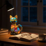 This 3D cat resin LED night light features intricate hand-carved details and vibrant gradient colours that create an eye-catching centrepiece for any space. The high-density resin construction ensures durability whilst the soft non-glaring LED light provides gentle illumination suitable for bedrooms, children’s rooms, study areas, and living spaces. The charming cat design appeals to cat enthusiasts and adds artistic character to home décor.
