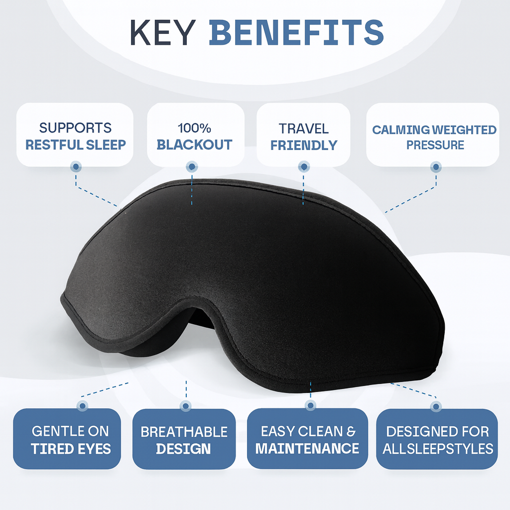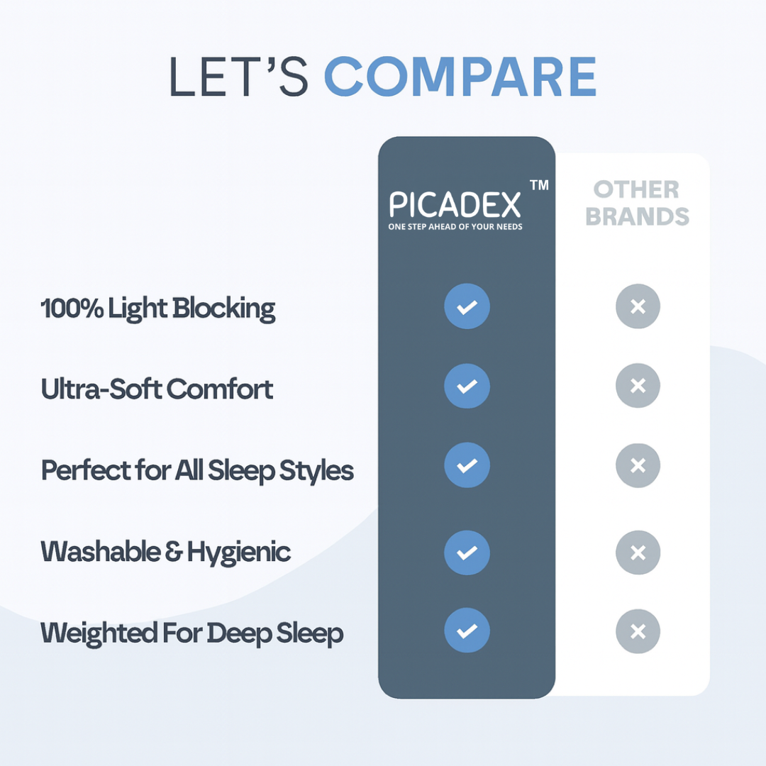 Drift into deep, restorative sleep with the Picadex Weighted 3D Contour Eye Mask. Designed to block out every trace of light while providing gentle pressure, this mask creates a calming, cocoon-like experience perfect for sleep, meditation, and travel. The contoured design allows your eyes to blink freely without pressure, making it far more comfortable than traditional flat masks.