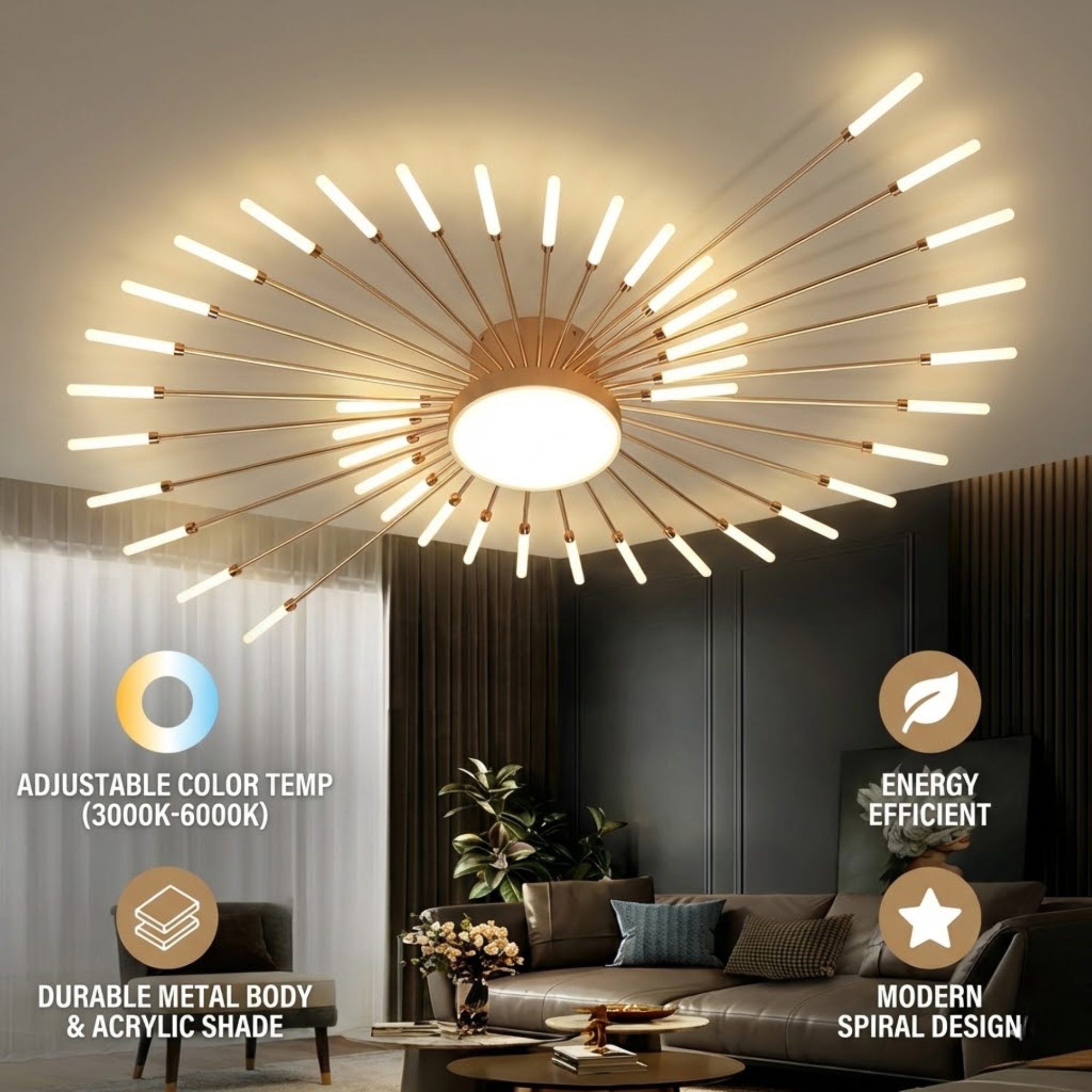 Elevate your living space with the Aetheris Designer Ceiling Light. This stunning Nordic-inspired fixture blends sculptural art with high-performance LED technology. Whether you choose the gold or black finish, its unique fan-shaped layout creates a striking focal point that radiates 4000K natural light, transforming any room into a sophisticated, modern sanctuary of style.
