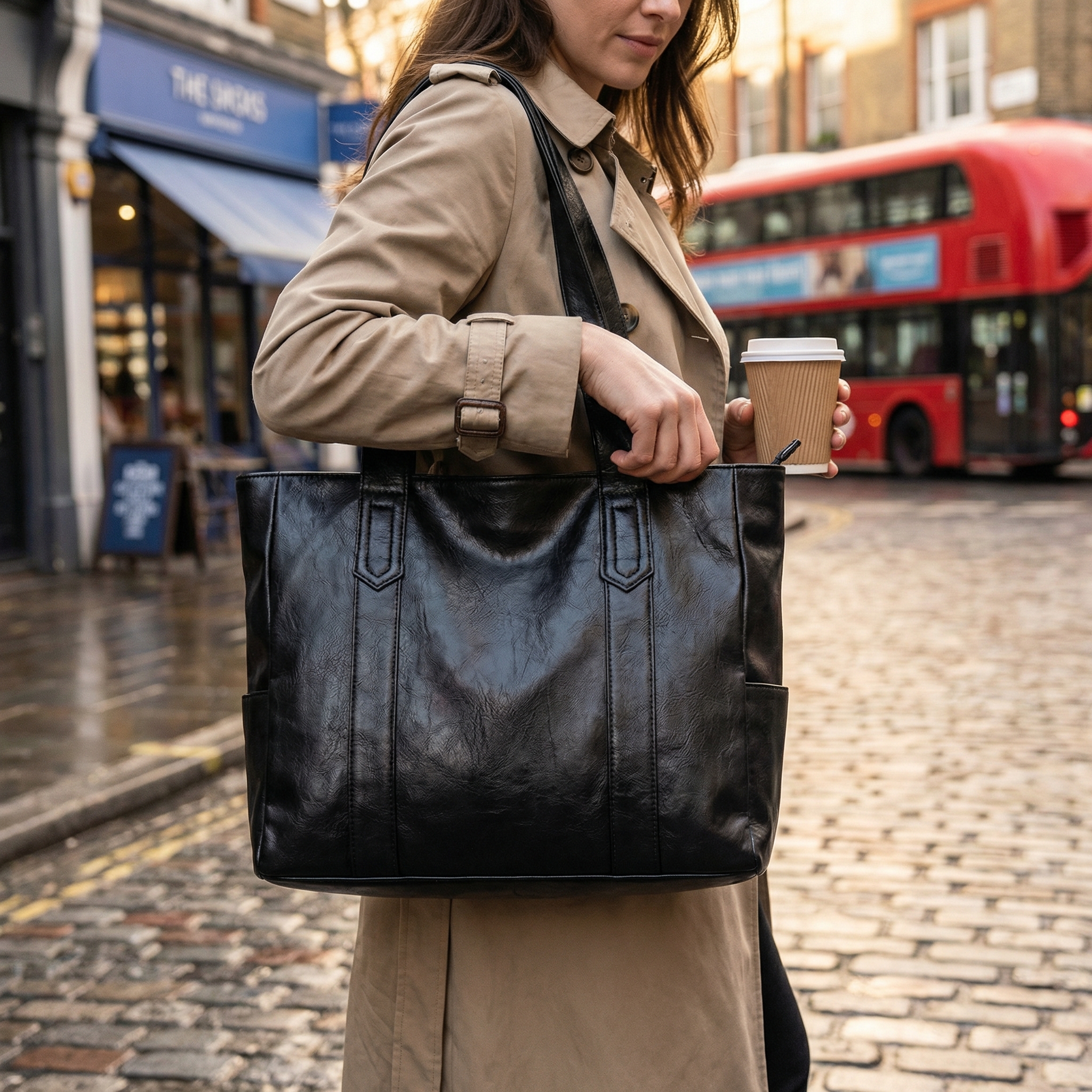 Experience the perfect blend of style and utility with our AuraTote Large Capacity Handbag. Designed for the busy British professional, this premium PU leather tote effortlessly holds your documents, tech, and daily essentials. Its vintage-inspired silhouette complements both formal office attire and weekend casual wear, making it your most versatile wardrobe staple.