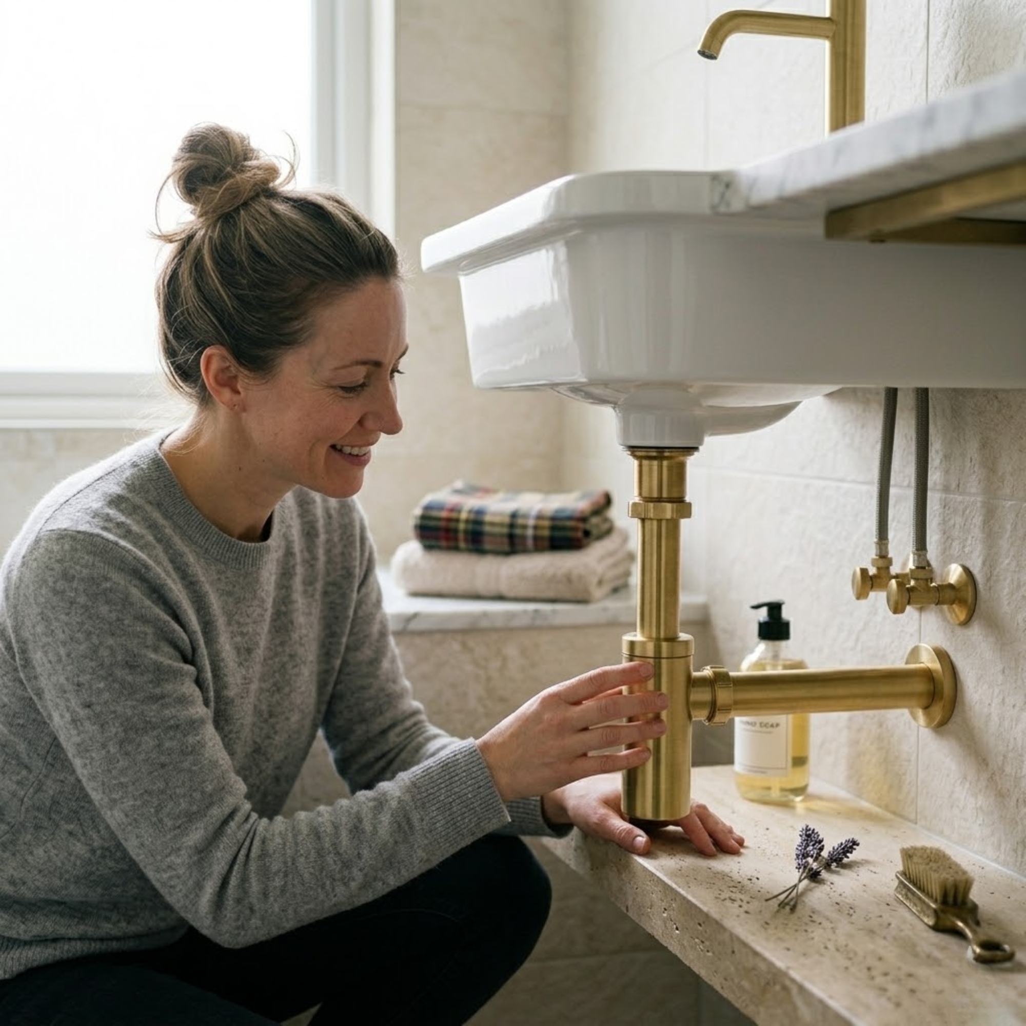 Upgrade your bathroom aesthetics with the Aurev Designer Bottle Trap. Expertly crafted from premium solid brass, this modern fixture replaces unsightly plastic pipes with a sleek, minimalist silhouette. Available in luxury finishes like Brushed Gold and Matte Black, it ensures your basin looks as stunning underneath as it does on top.