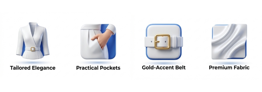 - Gold Accents: Signature waist belt adds a touch of luxury and definition.