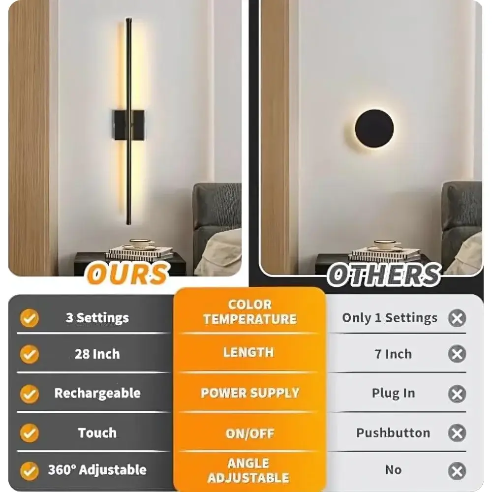 Available in sophisticated Black or Gold, these sconces are the perfect blend of function and luxury. With up to 50 hours of rechargeable battery life, stepless dimming, and a 350° rotatable head, you’re in full control of your home’s atmosphere. Whether it’s cosy evenings in the bedroom, lighting up hallways, or creating a statement in the living room, these wall sconces adapt beautifully to your lifestyle. Order today and transform your space effortlessly!