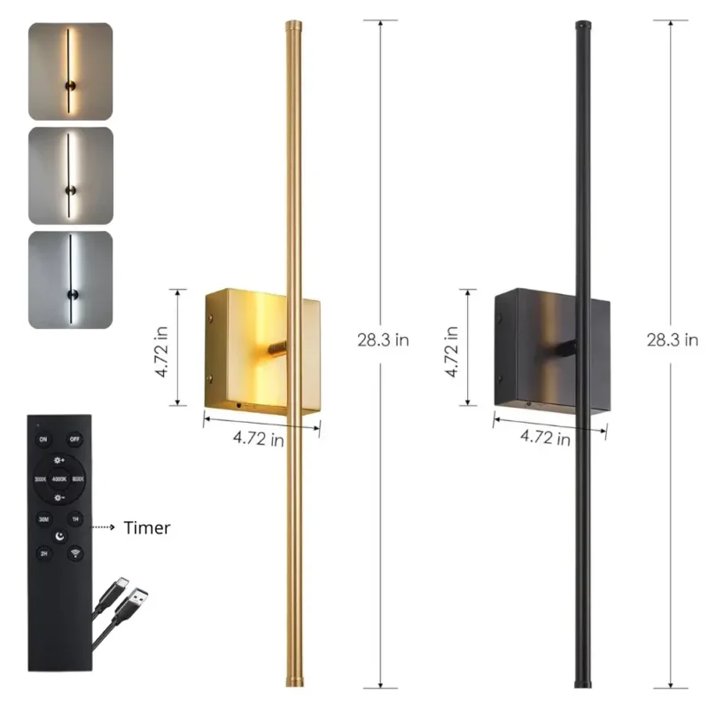Package Inclusions: 1x Wall sconce, 1x Remote control, Mounting hardware, 3M adhesive stick, USB Type-C charging cable, User manual.