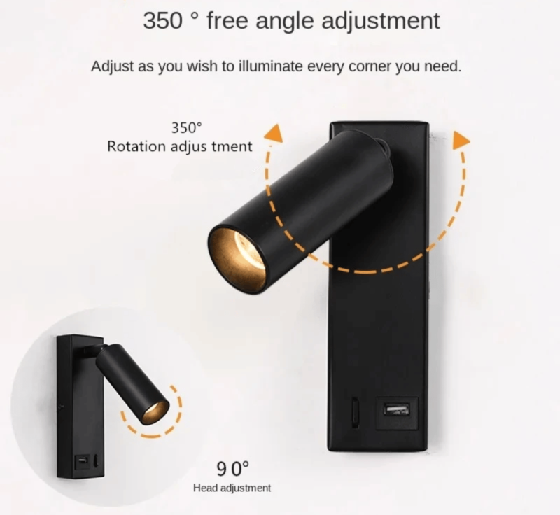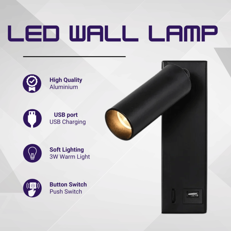 Elevate your bedroom lighting with our versatile LED Wall Lamp. Designed for convenience and style, this rotatable lamp features a USB switch, making it the perfect addition to any bedside. Experience superior lighting for your bedtime reading and nighttime activities.