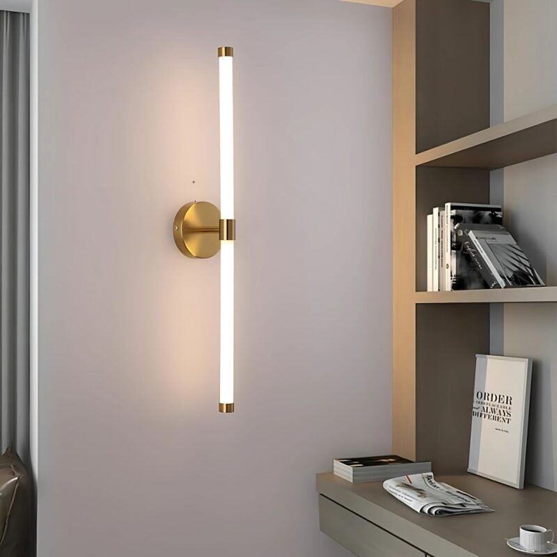 Enhance your interior with the Golden Designed LED Wall Lamp, a perfect blend of form and function. Featuring double cylindrical acrylic lampshades, this sleek wall light creates a soft, ambient glow—ideal for wall lights for living room, vanity areas, wall lamps for bedroom, or even entryways. With a luxurious brass finish and a modern silhouette, it effortlessly adds sophistication to any space. Whether placed above a mirror or used as a side light, the lamp guarantees a flawless atmosphere without dark spots.