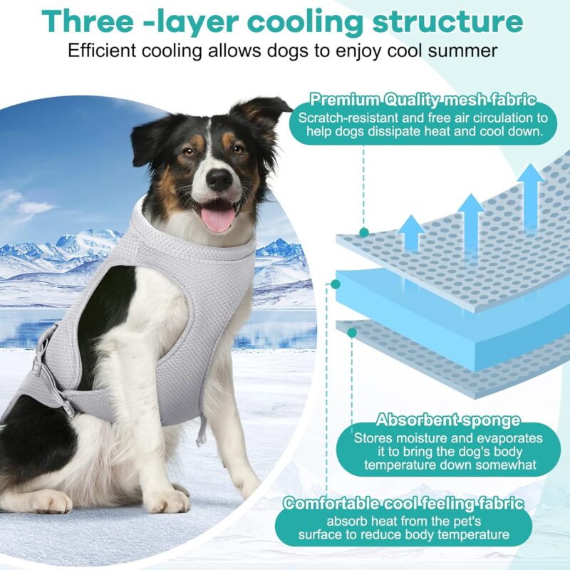 Keep your furry friend safe and comfortable in the summer heat with our Breathable Dog Cooling Vest Harness – the ultimate 3-layer cooling solution for walks, hikes, and outdoor adventures. Made with premium cooling fabric, this vest absorbs and retains water to provide up to 4 hours of evaporative cooling, preventing heatstroke while allowing full mobility. The adjustable buckles and titanium D-rings double as a secure harness, eliminating the need for extra gear. Give your dog the gift of cool comfort – shop now!