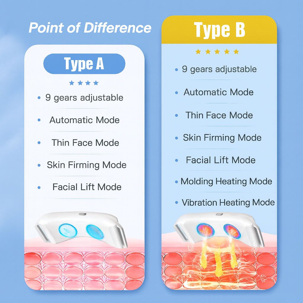 ✅ A: A-type has 5 EMS modes. B-type adds 7 modes with heat + vibration.