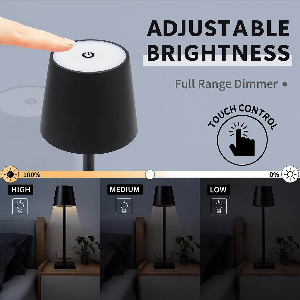 Whether you’re creating a cosy ambience for a quiet evening, brightening your office for productivity, or setting the mood for outdoor dining, this lamp adapts beautifully. Its dimmable settings, sleek design, and portable build make it a must-have accessory for modern living. Elevate your space today simple, stylish, and truly cordless.