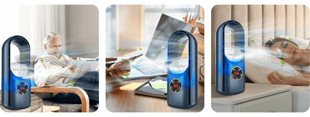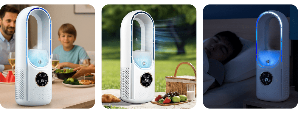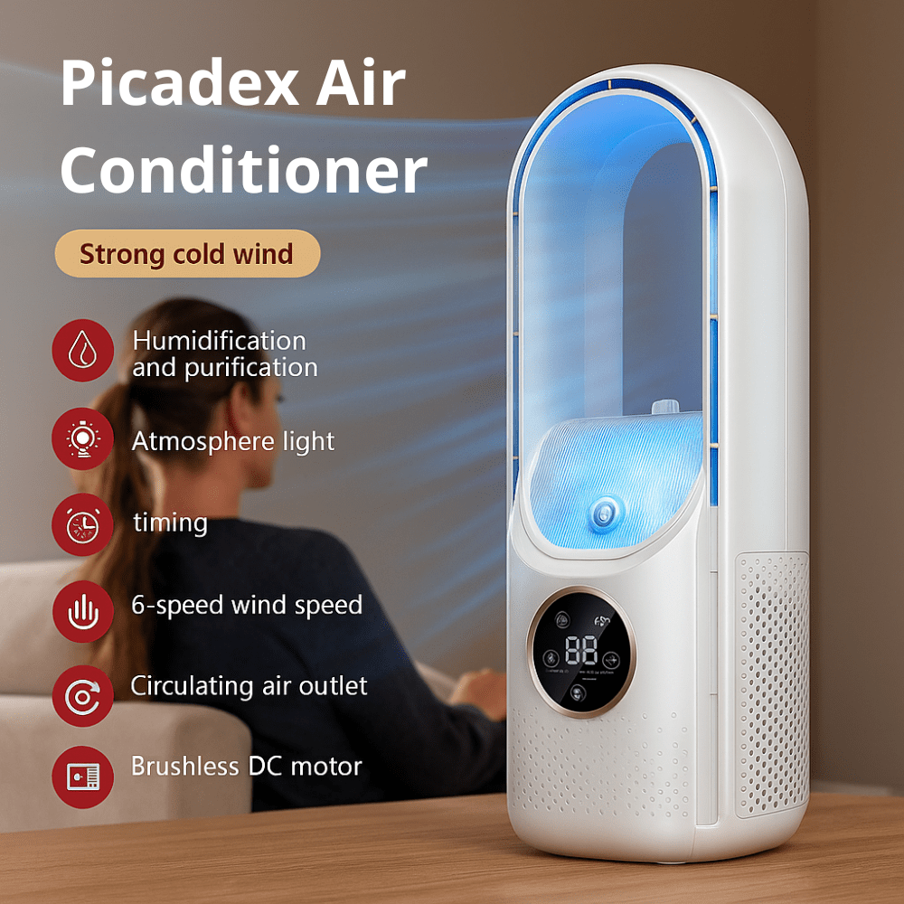 Enjoy instant relief from the heat with the Picadex Bladeless Portable Air Cooler. Compact and lightweight, it’s designed for UK homes, offices, and summer travels. With whisper-quiet operation, 6 fan speeds, and eco-friendly performance, it keeps you cool and comfortable wherever you are — with fast, free UK delivery and a 31-day satisfaction guarantee.