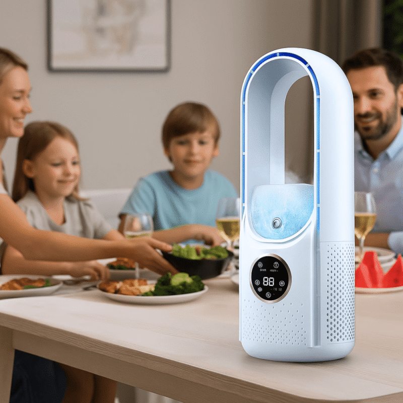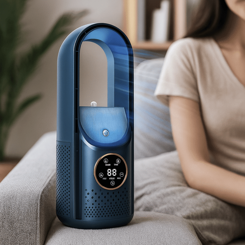 Enjoy instant relief from the heat with the Picadex Bladeless Portable Air Cooler. Compact and lightweight, it’s designed for UK homes, offices, and summer travels. With whisper-quiet operation, 6 fan speeds, and eco-friendly performance, it keeps you cool and comfortable wherever you are — with fast, free UK delivery and a 31-day satisfaction guarantee.