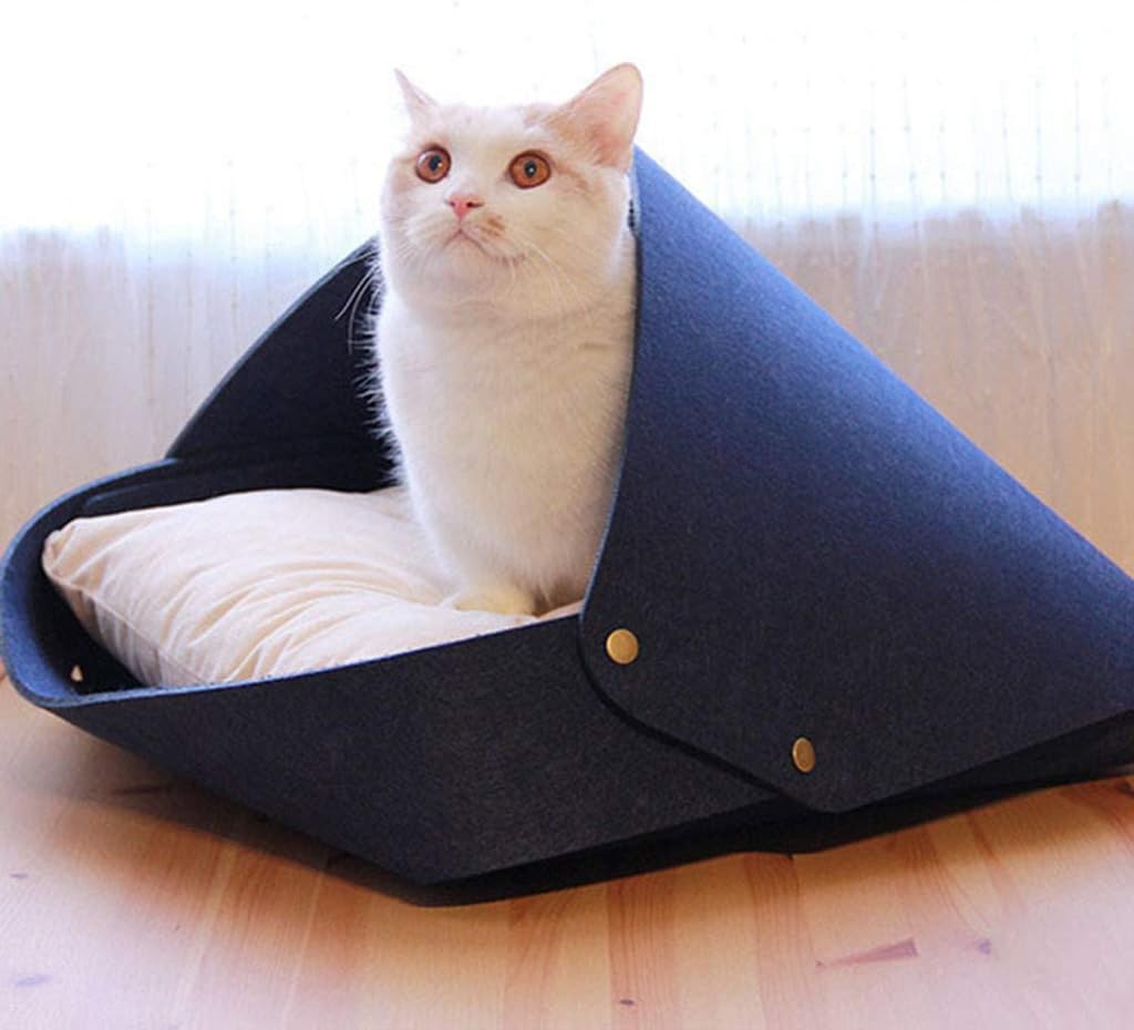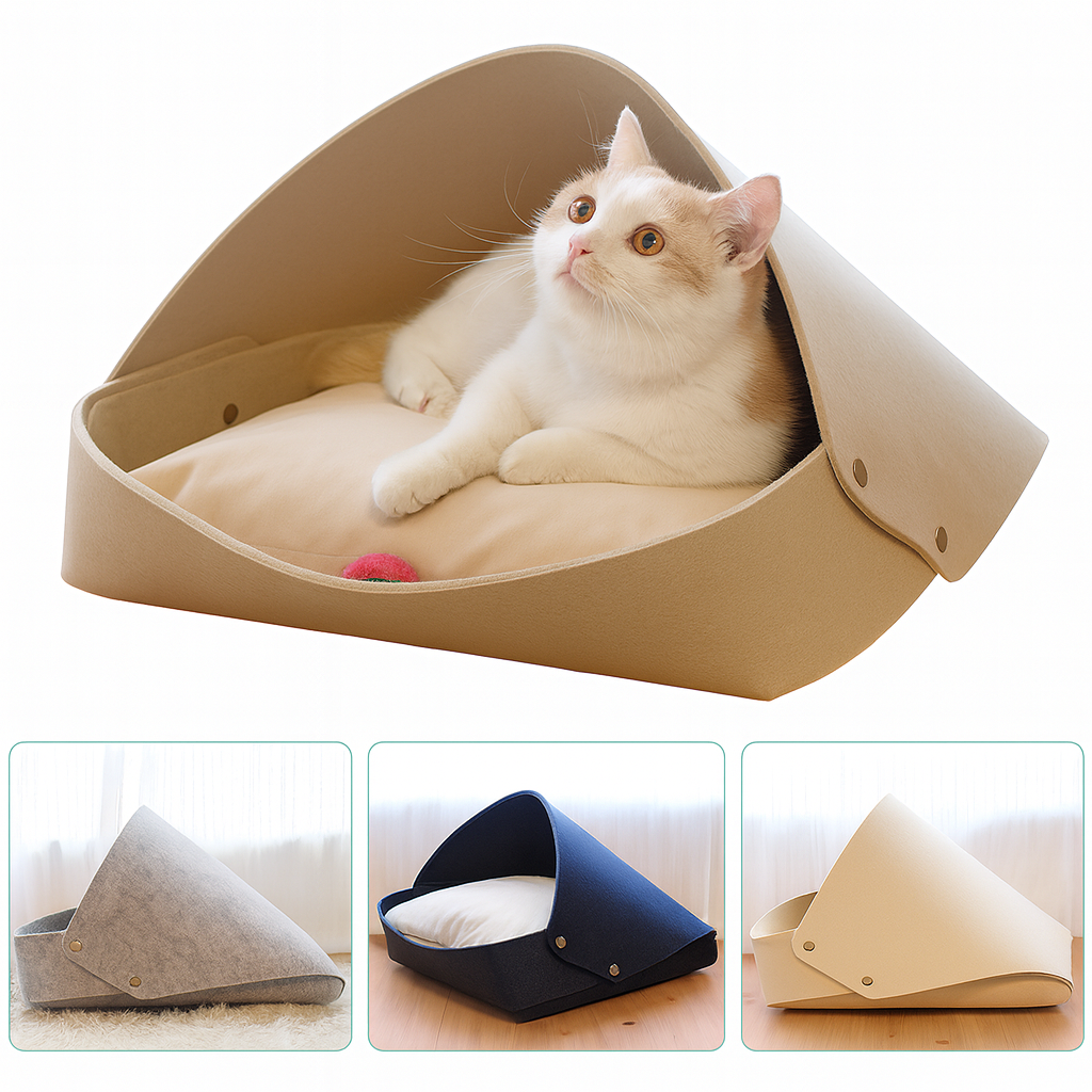 Transform your home into a feline paradise with the Cosy Haven Felt Cat Bed, the stylish, semi-enclosed sanctuary designed to make every nap feel luxurious. Crafted from premium, pet-safe felt, this beautifully contoured hideaway provides the warmth and comfort cats naturally crave. Its clever cocoon-like shape creates a peaceful retreat where your cat can curl up, observe the world, or escape for a quiet snooze. With a plush, generously filled cushion included, your furry friend will enjoy unbeatable comfort from day to night.