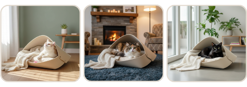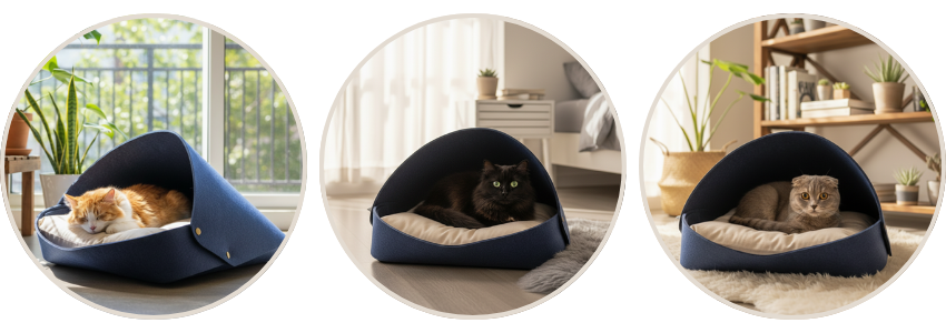 Give your cat the perfect blend of comfort, warmth and privacy. The Cosy Haven Felt Cat Bed offers a secure semi-enclosed hideaway that keeps pets calm, snug and happy all year round.