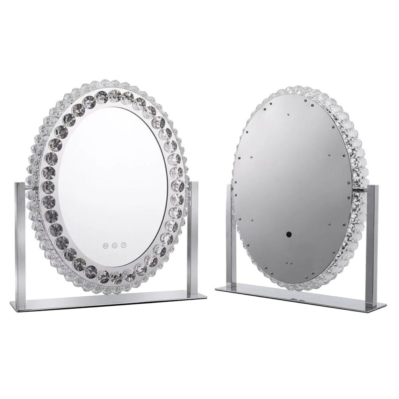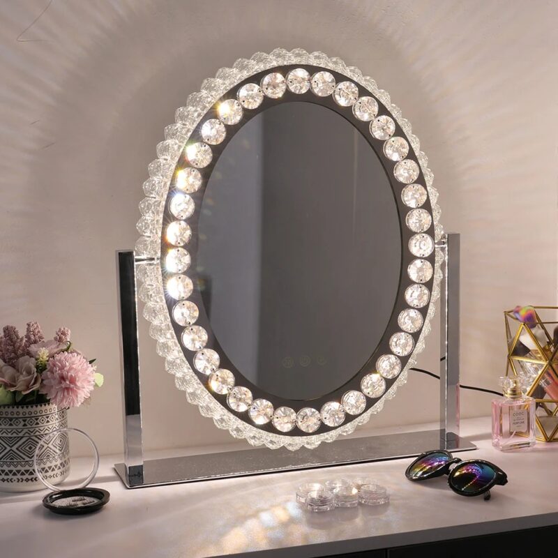 Indulge in the ultimate beauty experience with Our Crystal Dressing Makeup Mirror with Dimmable LED Light – where elegance meets functionality. Featuring a luxurious crystal-rimmed frame that sparkles from every angle, this freestanding oval mirror transforms your dressing table into a glamorous beauty station. Whether you’re perfecting your makeup, styling your hair, or completing your skincare routine, its crystal-clear reflection ensures you look flawless every time.