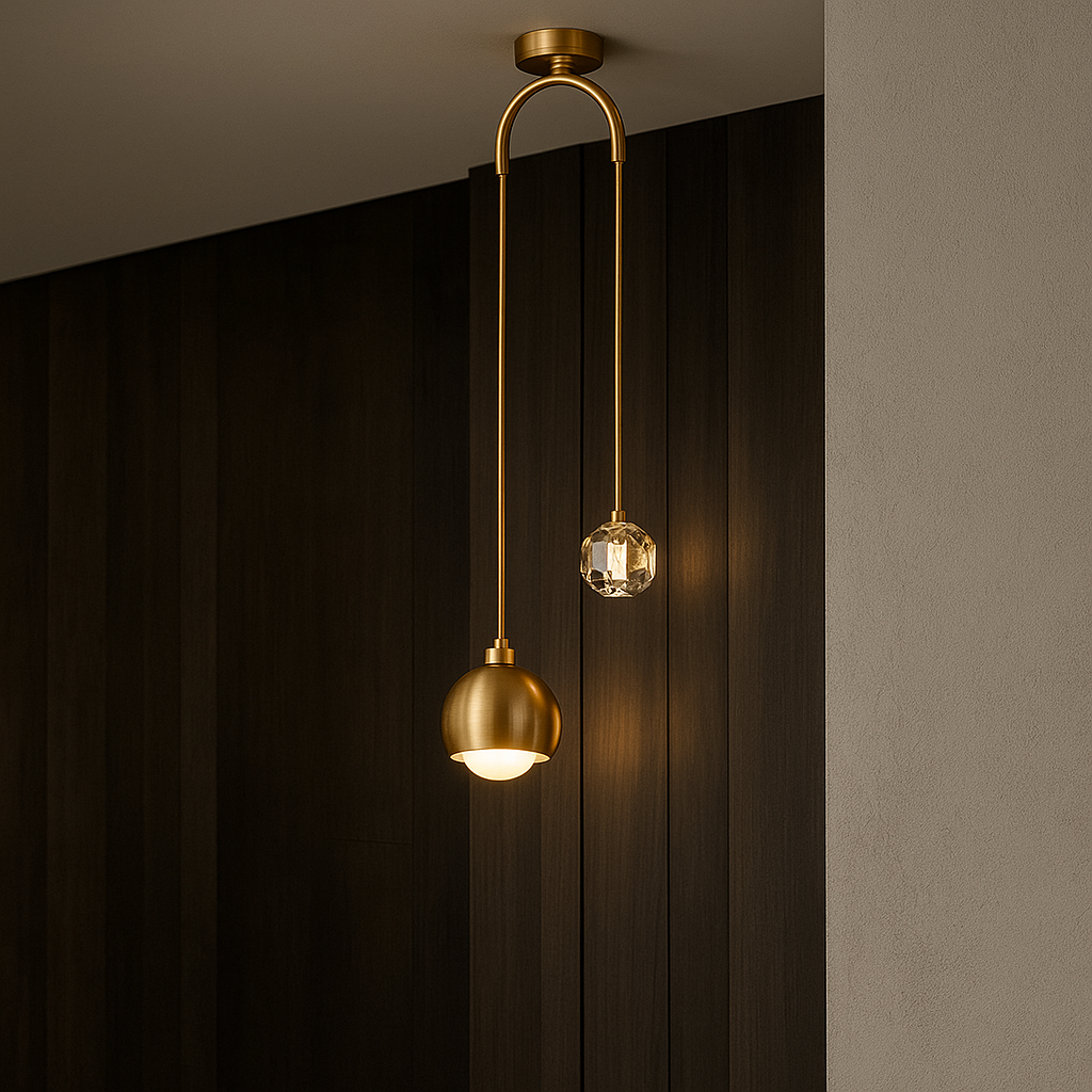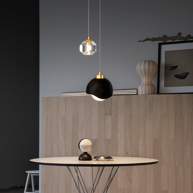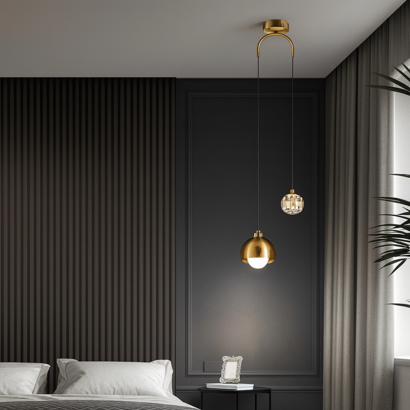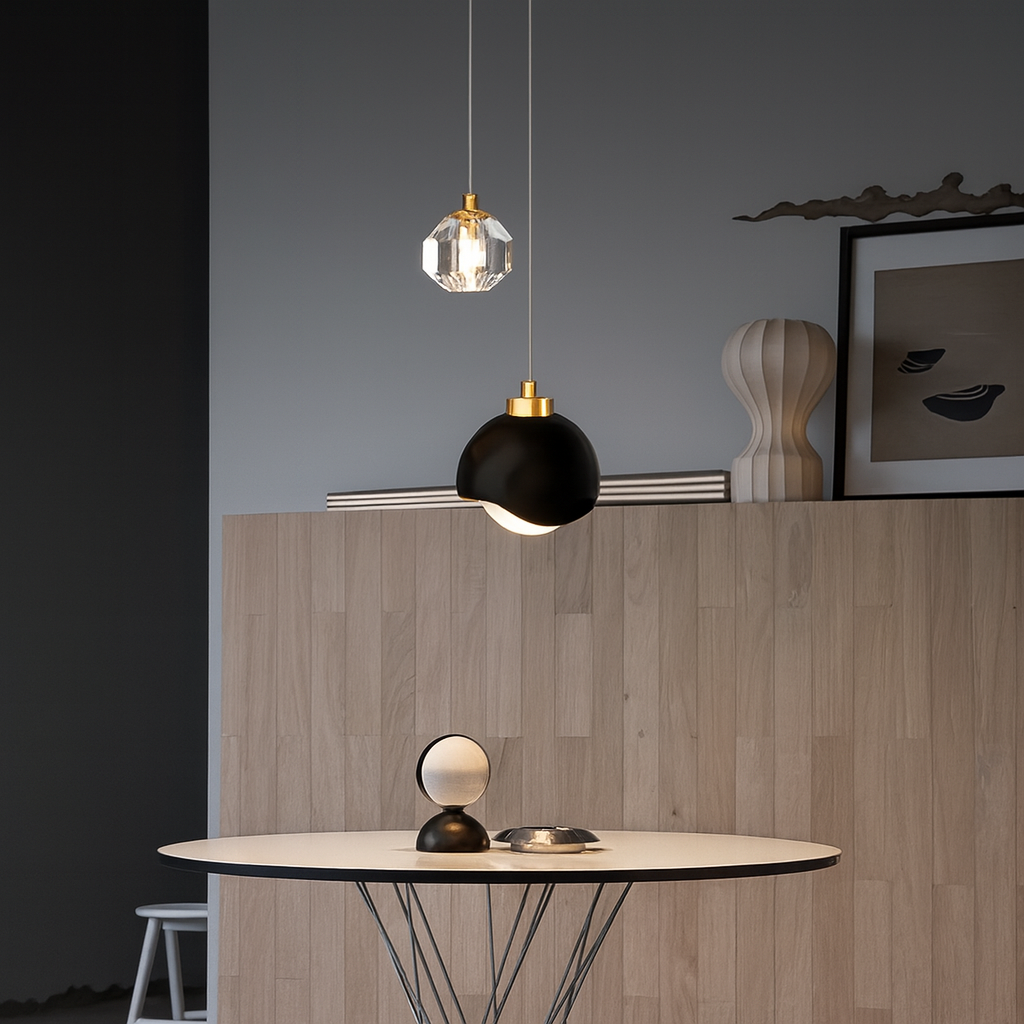 Elevate your interiors with the Picadex Modern Simple Crystal Pendant Light, a statement piece that blends luxury with minimalist design. Perfectly suited for bedrooms, living rooms, or dining spaces, this elegant pendant light adds a sophisticated charm while creating a warm and inviting atmosphere. Its sleek metallic finish paired with a sparkling crystal detail brings a refined touch of Nordic elegance to your décor.