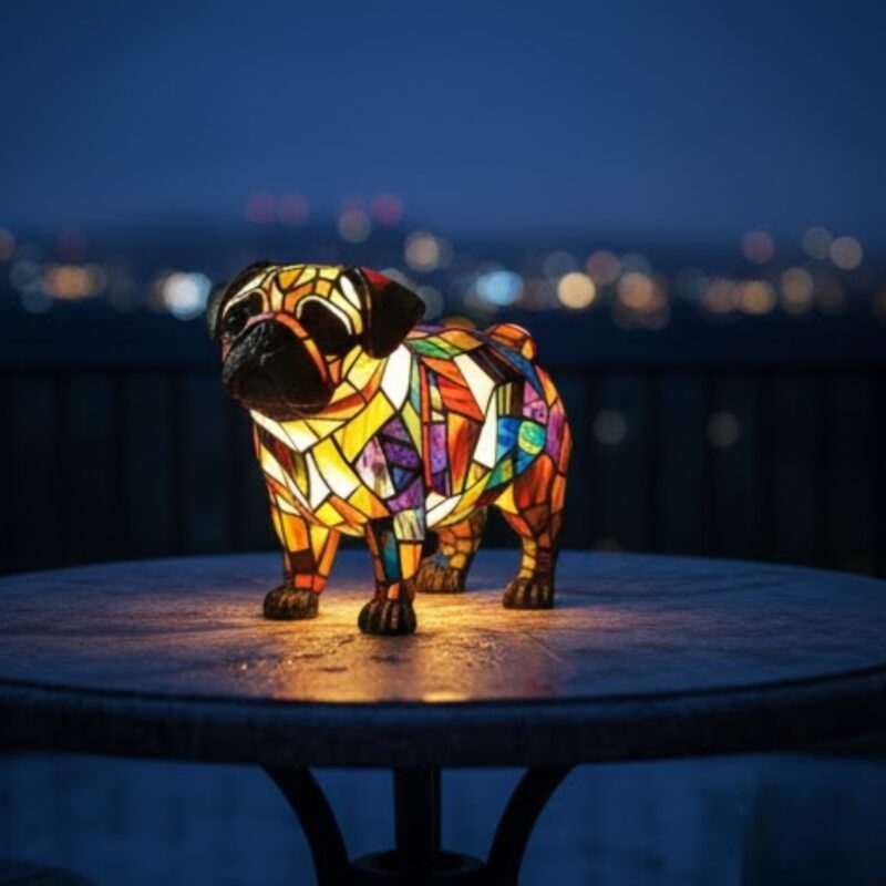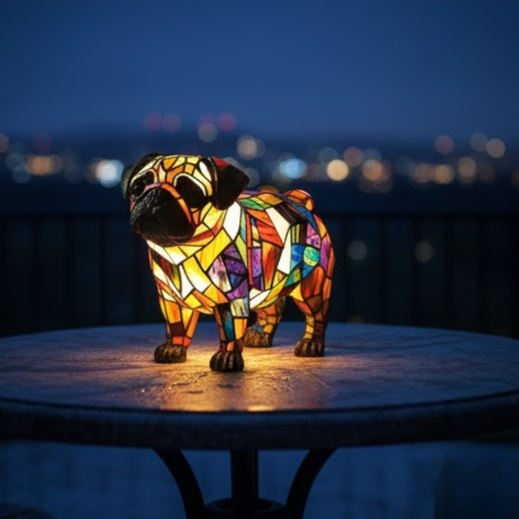 • Decorative stained-resin design – colourful dog figure adds charm day and night