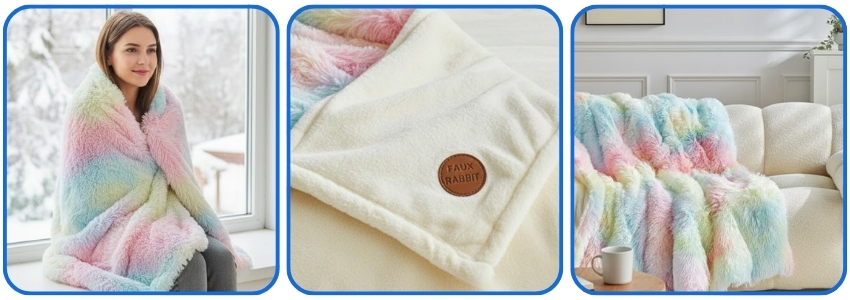 - Double Sided Design: Coral fleece on one side, mink plush texture on reverse for versatile comfort