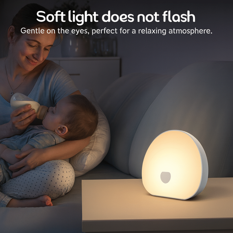 ✅ Gentle LED Night Light – touch-controlled RGB light with adjustable brightness for comfort at night