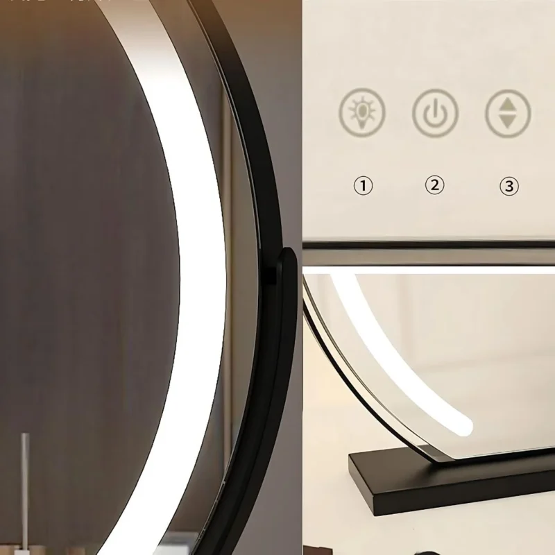 Choose between rechargeable or plug-in power, and enjoy complete freedom of use. With three lighting modes — warm, natural, and cool — and adjustable brightness at your fingertips, this mirror adapts to your routine: soft glow for evenings, crisp daylight for precision work, or neutral balance for everyday makeup. The 360° rotation, memory function, and sturdy metal base make it as practical as it is beautiful.