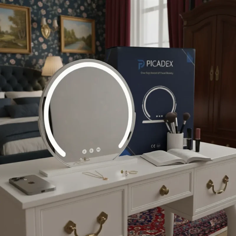 Get ready in perfect light every time with the PICADEx Dressing Table Mirror with Lights — where modern design meets studio-grade clarity. Designed for UK beauty lovers who want accuracy and style, it delivers bright, even lighting that mimics real daylight, so your foundation, contour, and skincare look flawless both indoors and out. Its sleek round frame, available in gold, white, black, or silver, turns any dressing table into a luxurious setup.