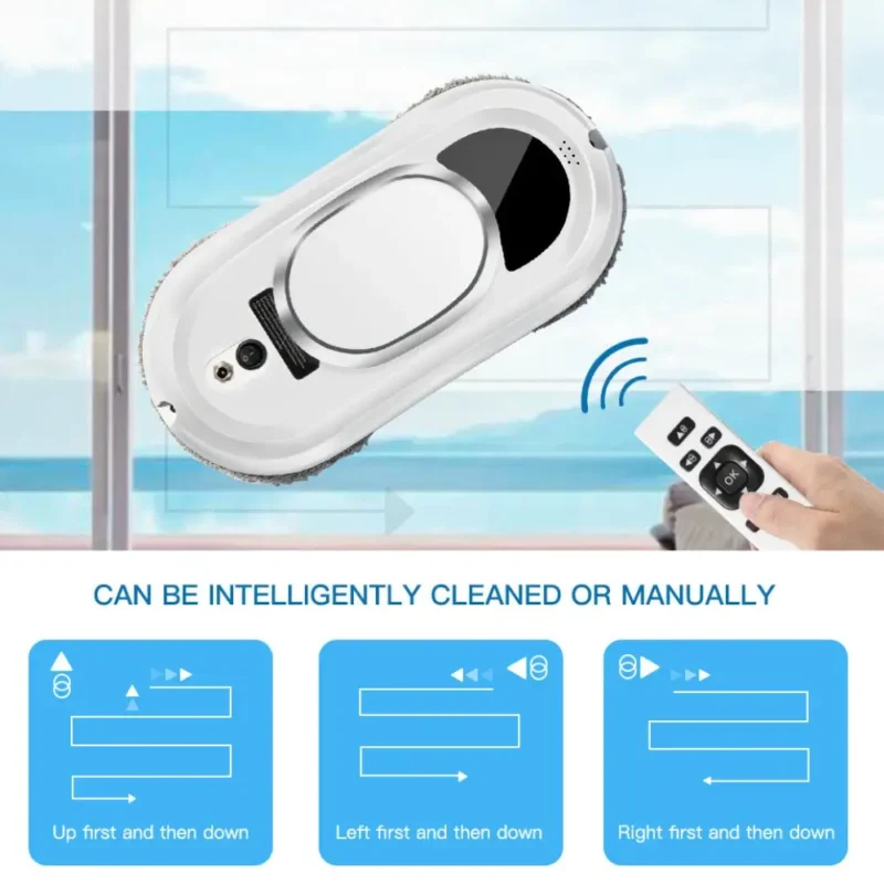 Say goodbye to manual window cleaning with the Electric Window Cleaner Robot, designed for both indoor and outdoor use. With a powerful 2800Pa suction, it firmly attaches to glass surfaces, delivering a streak-free clean on windows, mirrors, and even smooth walls. Thanks to its intelligent navigation system and remote control operation, cleaning is as easy as pressing a button. Whether you’re tackling large, hard-to-reach windows or small glass surfaces, this robot gets the job done, saving you time and effort.