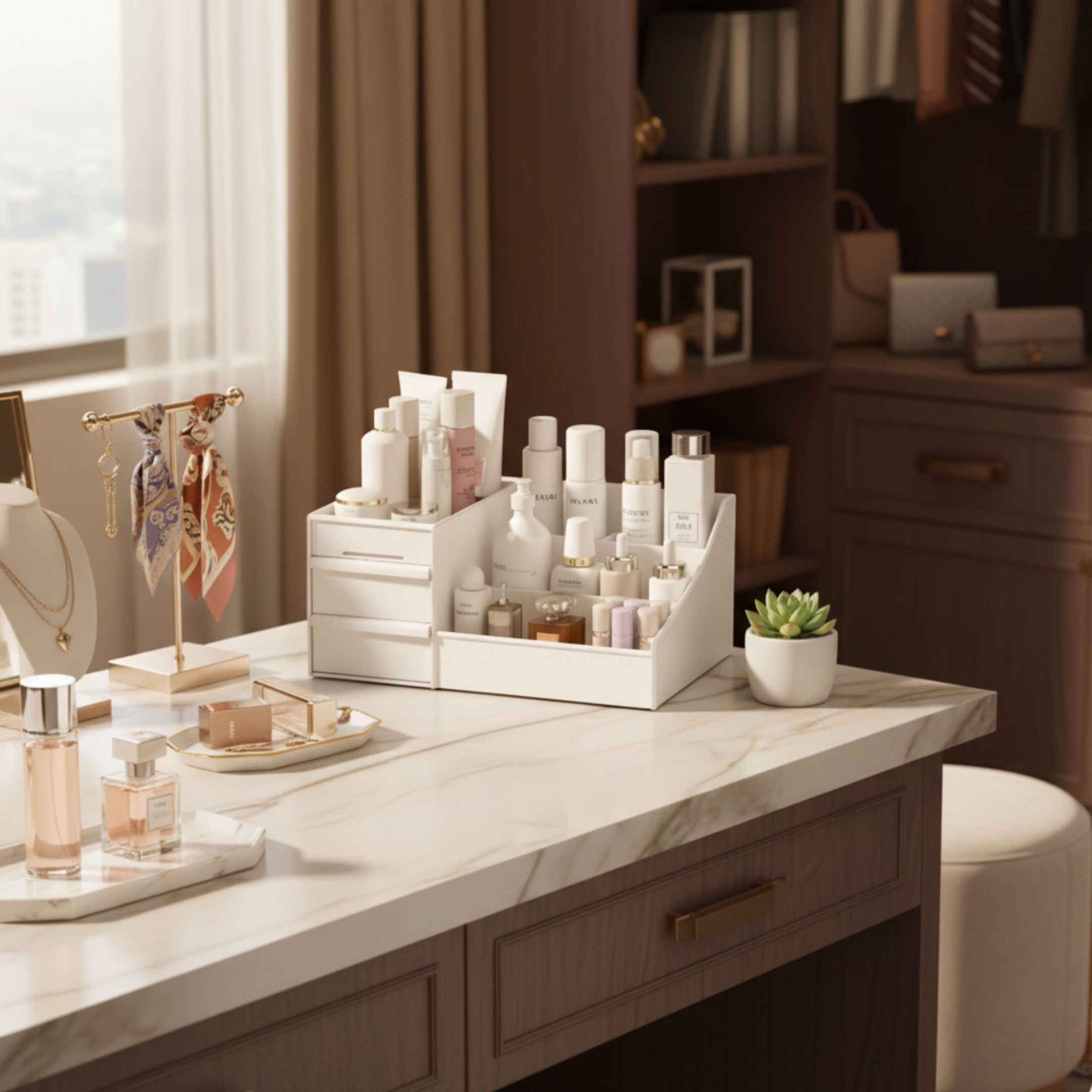 ✅ A: Yes, the compartments and drawers can store bottles, creams, and beauty tools with ease.