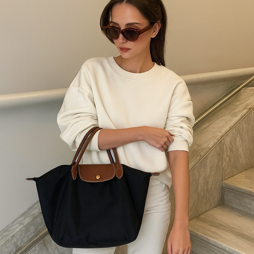 ✅ A: The bag comes in three sizes – Small for essentials, Medium for work, and Large for travel.