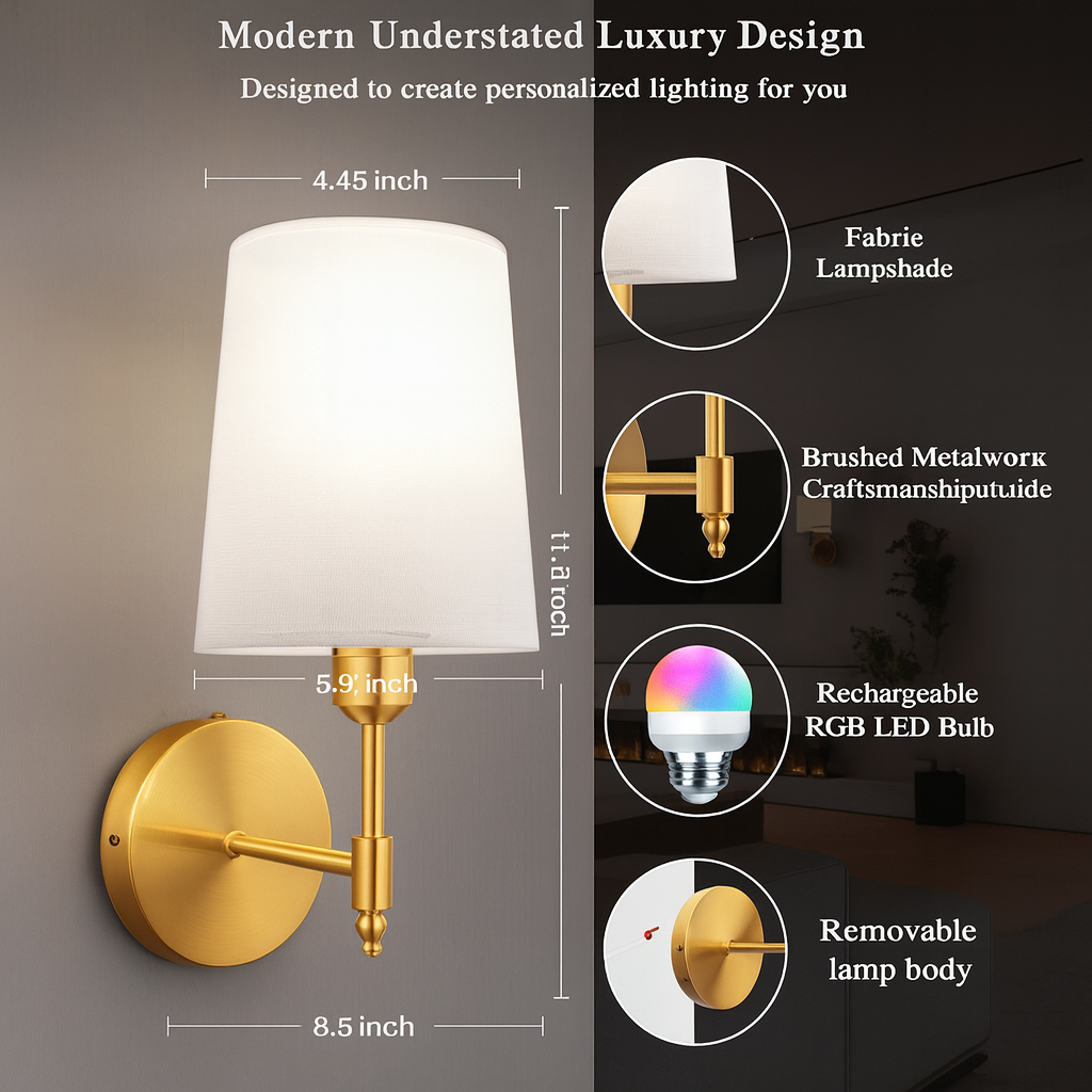 Transform your living space with this stylish battery-powered wall lamp set, designed to combine elegance with modern convenience. No need for wiring or outlets – simply mount, switch on, and enjoy instant lighting wherever you desire. With its soft fabric shade and sleek iron body, it brings a timeless touch to any bedroom, lounge, or hallway.