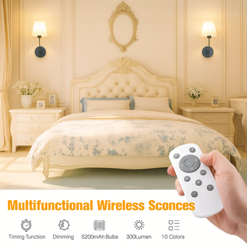 Transform your living space with this stylish battery-powered wall lamp set, designed to combine elegance with modern convenience. No need for wiring or outlets – simply mount, switch on, and enjoy instant lighting wherever you desire. With its soft fabric shade and sleek iron body, it brings a timeless touch to any bedroom, lounge, or hallway.