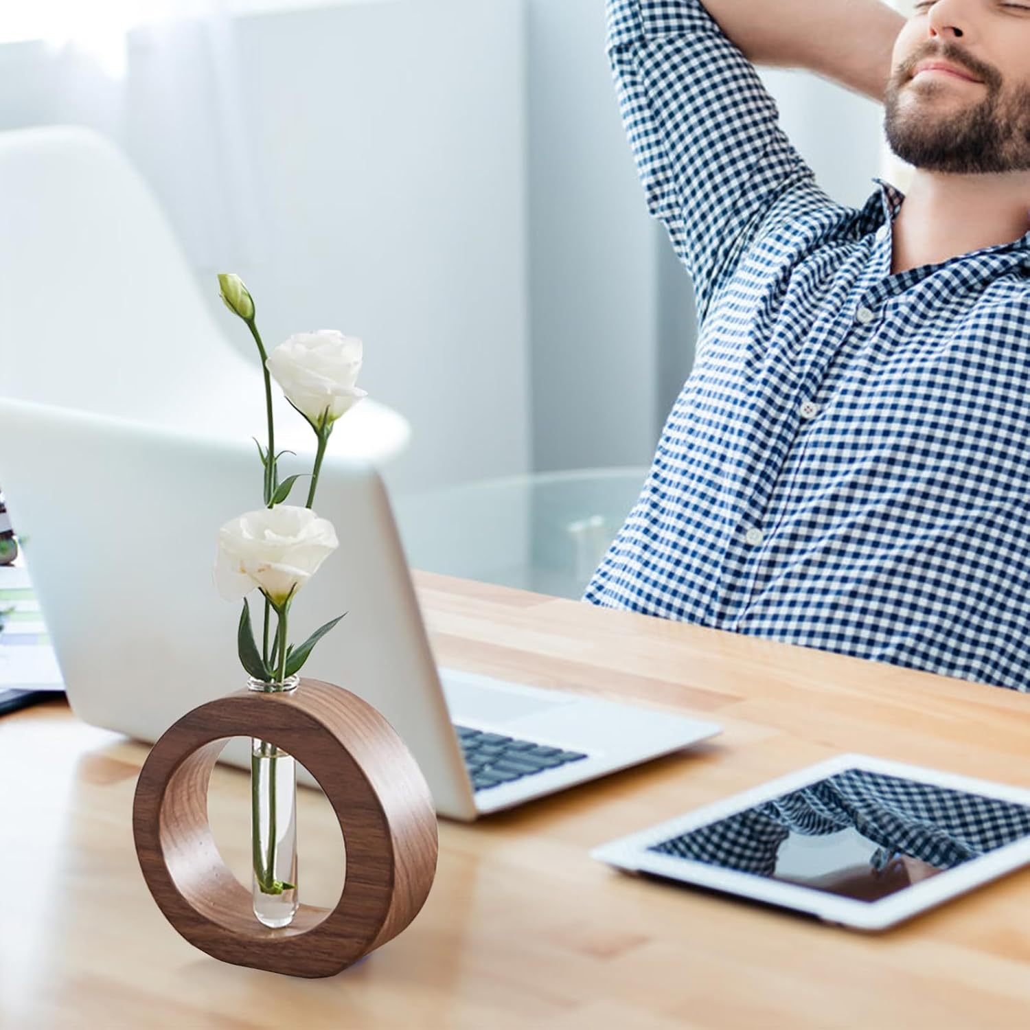 Bring nature’s charm into your home with this beautifully crafted Transparent Hydroponic Flower Device. Combining natural wood and clear glass, it perfectly balances minimalism and warmth, creating a serene focal point for any space. Whether placed on a windowsill, desk, or coffee table, its simple elegance transforms ordinary flowers into an exquisite display.