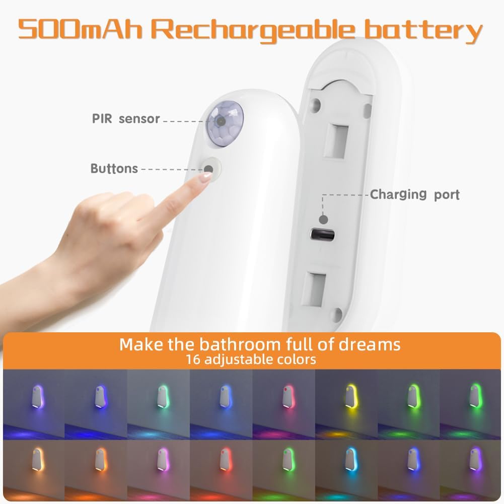With 7 vibrant colours to choose from or an automatic colour-changing mode, it brings both practicality and fun to your bathroom. Rechargeable and energy-efficient, it provides reliable light exactly when you need it. Whether for kids, guests, or a stylish touch to your night-time routine, GlowSmart makes every visit safe, soothing, and effortless. Order yours today and brighten up your bathroom instantly!