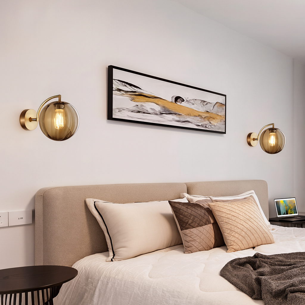 Bring elegance and warmth into your home with Our Modern LED Wall Lamp a perfect fusion of minimalist Nordic design and sophisticated craftsmanship. Featuring a gently curved metallic frame and a stained glass globe, this wall light adds a soft, ambient glow that transforms any room into a stylish retreat. Whether mounted in your living room, bedroom, dining area, or hallway, it serves as both a functional light source and a decorative statement piece.