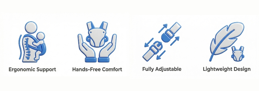 - Ergonomic M-Position: Certified design for healthy infant hip and spine development.