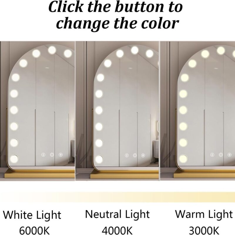 - Adaptable Lighting: Features 3 LED light colors (cool, daylight, warm) in one mirror to simulate different environments.