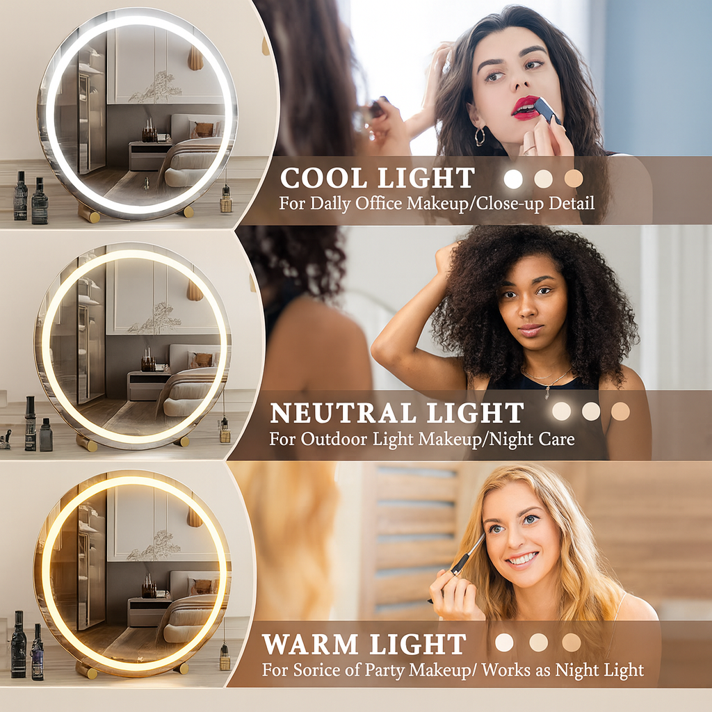 3 Light Modes – Choose from warm, natural, or cool to complement your environment.