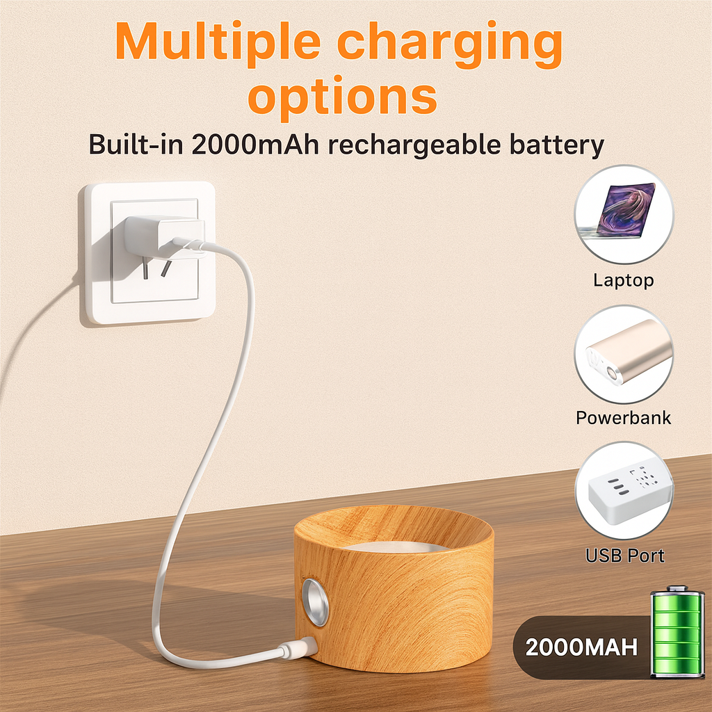 Wireless & Rechargeable – Built-in 2000mAh battery lasts up to 20 hours on low brightness.