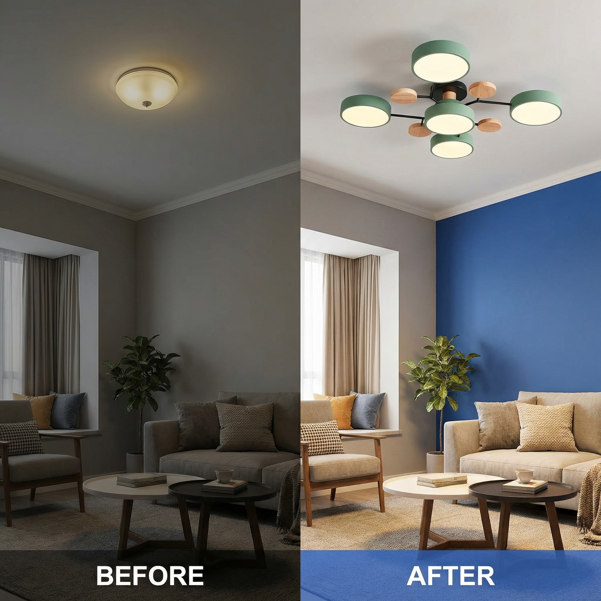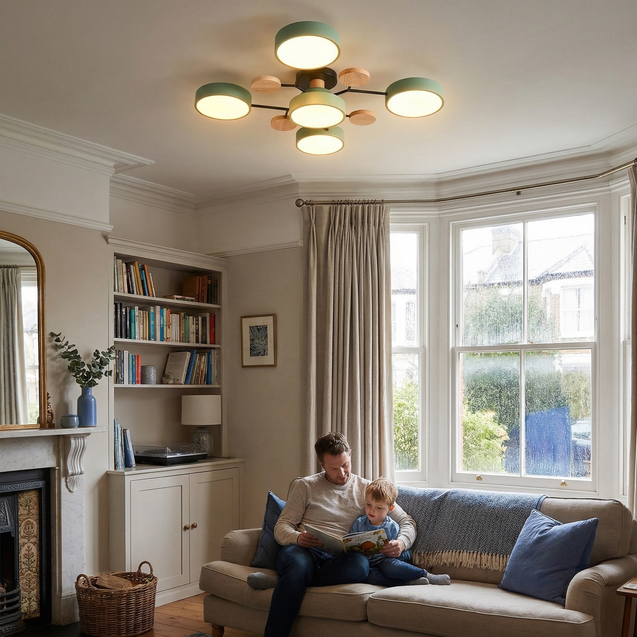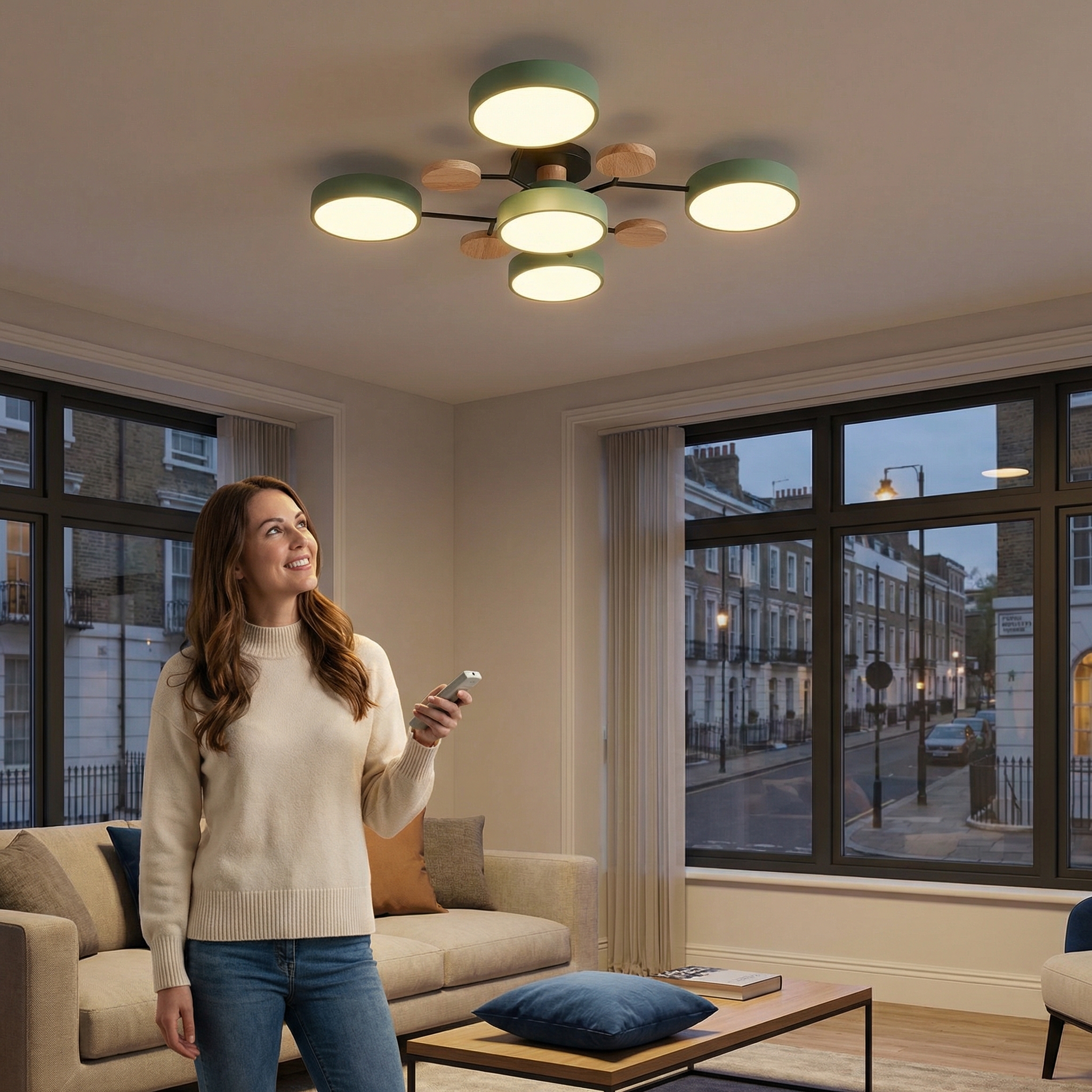 Engineered for efficiency and longevity, this energy-saving 48W-60W LED lamp boasts a high CRI of ≥90, rendering colours naturally and vividly. Available in four chic macaron finishes—Green, White, Black, and Grey—and two sizes, it offers a lighting range of 8-15㎡. It’s the ultimate solution for modern, flicker-free ceiling lighting in UK homes.