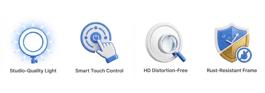 - Studio Lighting: Adjustable brightness levels for professional makeup application in any room.