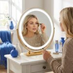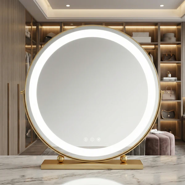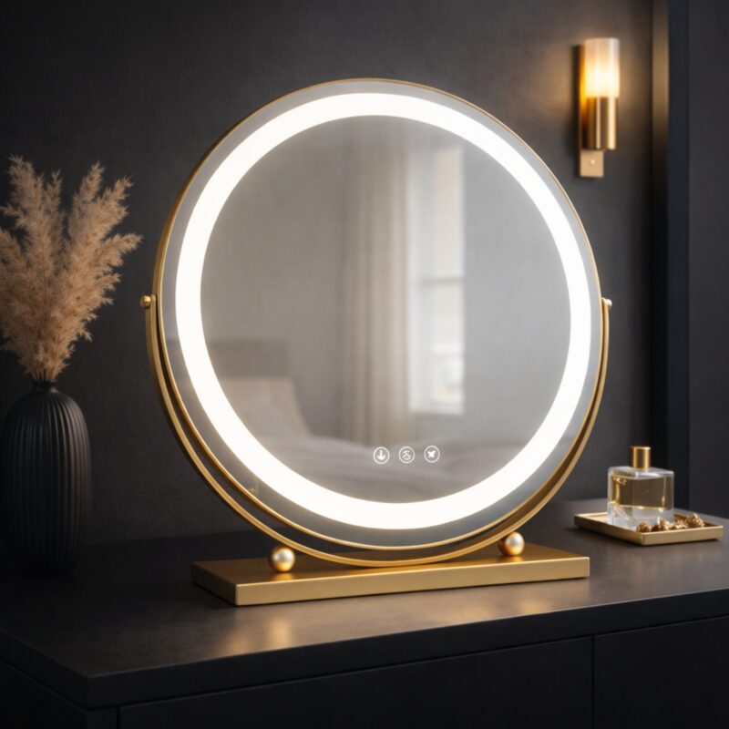 Transform your beauty routine with the GlowSpire makeup mirror with lights. Designed for precision, this professional vanity mirror delivers studio-quality illumination, ensuring your foundation is perfectly blended every time. The sleek round frame adds a touch of modern luxury to your dressing table, combining high-end aesthetics with essential daily functionality for a flawless finish.