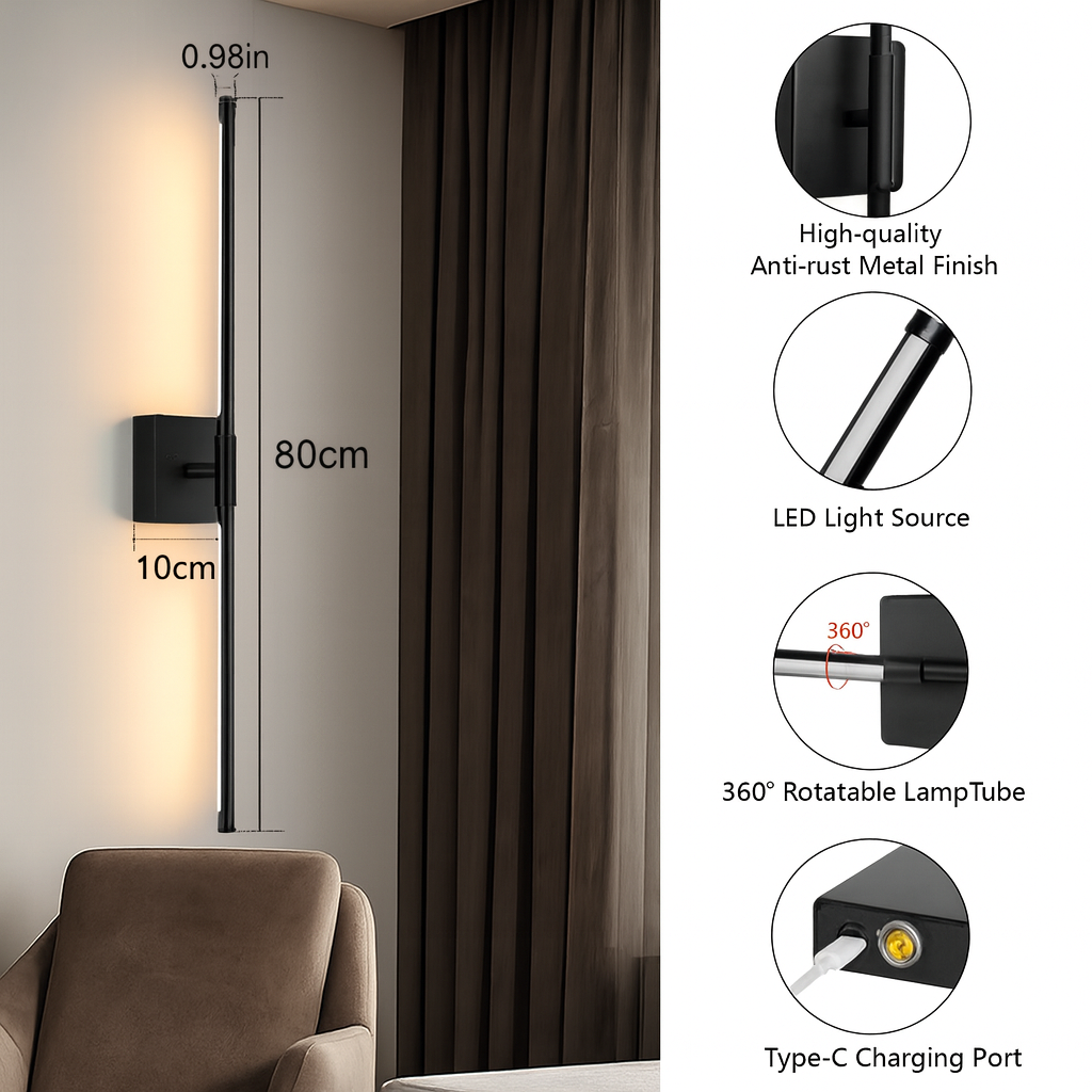 Transform your living space with our 360° Rotatable Rechargeable LED Wall Lamp  a perfect fusion of minimalist design and cutting-edge functionality. Crafted from premium aluminium and available in sophisticated black or gold finishes, this lamp delivers both beauty and practicality. Its sleek form and flexible rotation allow you to direct light precisely where you need it, making it ideal for bedrooms, hallways, studies, or as ambient accent lighting.