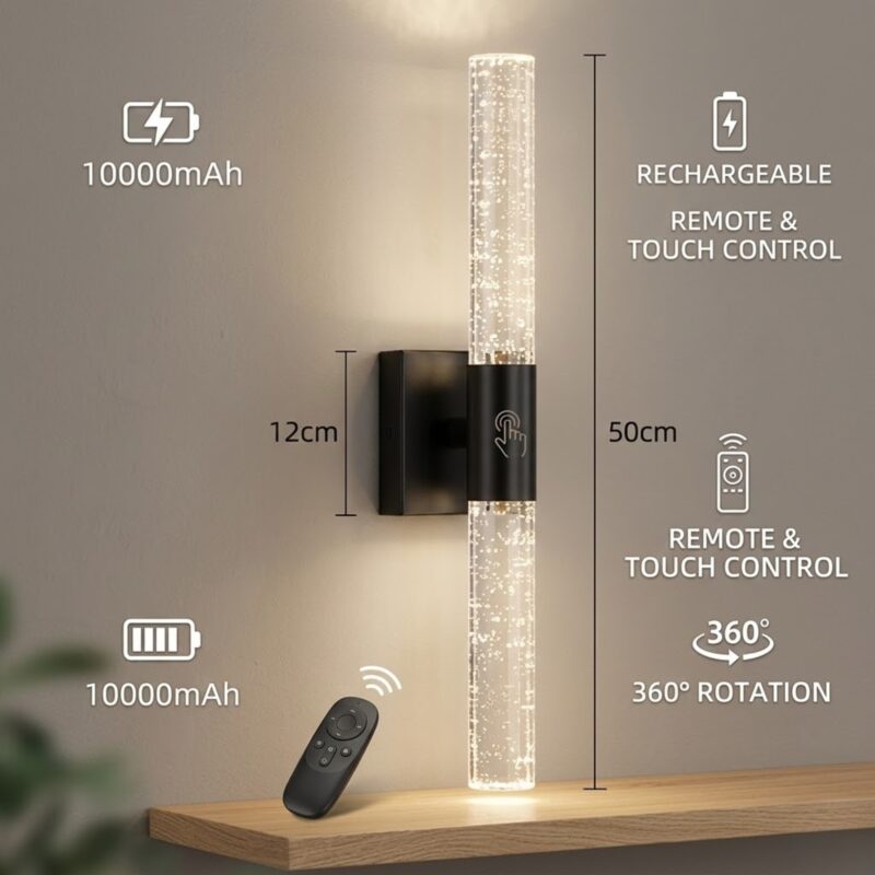 Transform any room instantly with the LumireX Wireless Wall Sconce. This battery-operated LED lamp eliminates the need for expensive electricians, offering a luxury gold finish and a unique bubble acrylic design. Perfect for renters and homeowners alike, it provides sophisticated, dimmable lighting that enhances your bedroom, hallway, or living space effortlessly and stylishly.