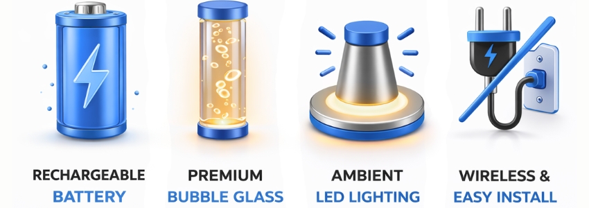 • Wireless Freedom: No hardwiring required for a clean, completely cable-free look.
