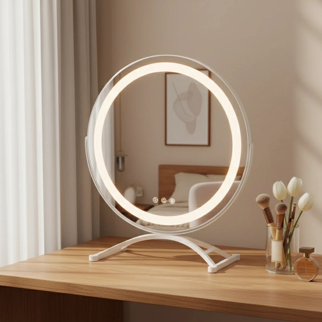 Bad lighting = bad results. This mirror recreates real-world lighting so your base, bronzer, and brows look true in daylight, office light, or evening—no more surprises when you step outside. The memory function remembers your last brightness and tone, so your routine is fast and consistent every time.