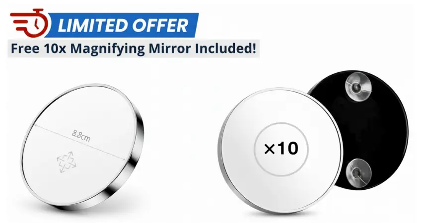 - 360° view + 10× detail mirror: Rotate freely and attach the magnifying mirror for precise liner and brows.