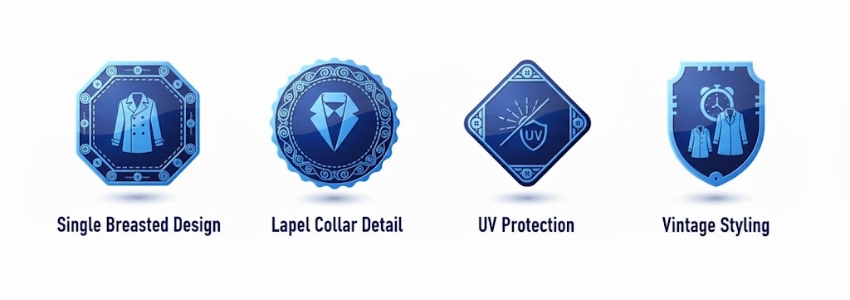- Single Breasted Design – Classic button-front closure provides timeless styling and easy access whilst creating clean vintage silhouette