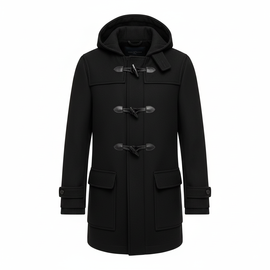 This men’s thickened woolen hooded coat delivers timeless trench styling with hooded design and buckle fastening detail. The thick knit weave provides superior insulation whilst the hood attachment offers adjustable head coverage against wind and rain. Buckle closure creates secure fastening with traditional aesthetic, and woolen construction ensures breathable warmth. Black colour coordinates seamlessly with professional suits, smart-casual attire, and weekend wear throughout autumn and winter.