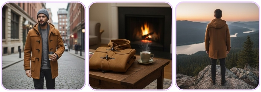 • Office & professional wear – warm, polished outerwear for cold commutes and business settings.