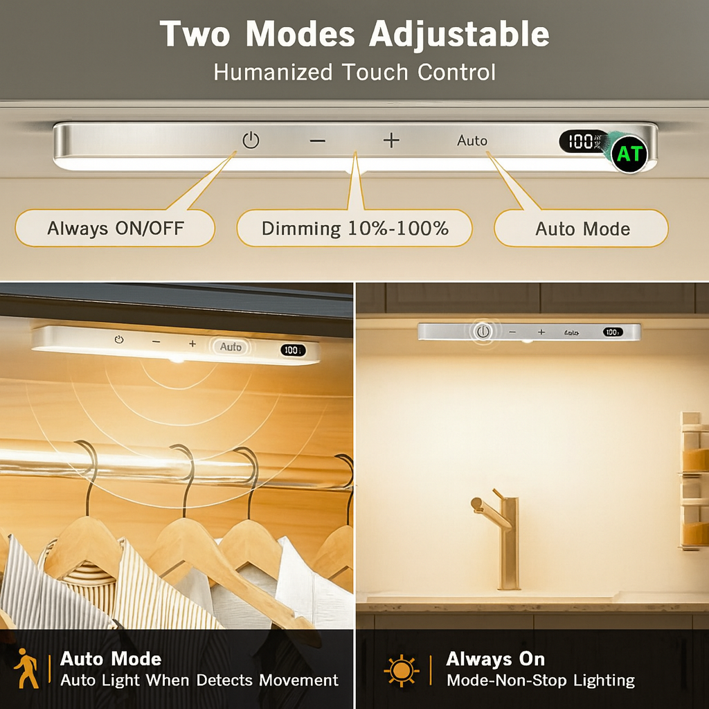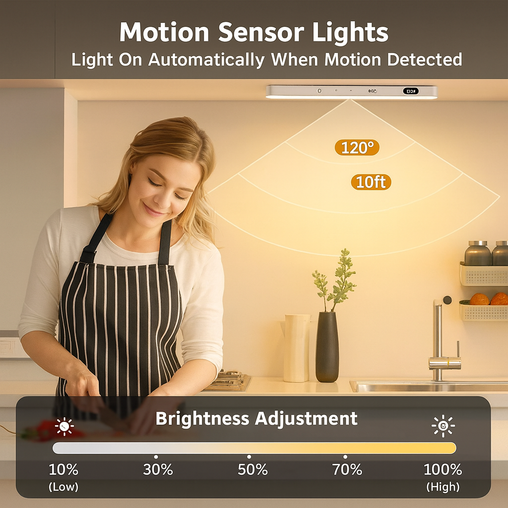 Crafted for convenience, the Motion Sensor Light is wireless, rechargeable, and easy to install thanks to its magnetic adhesive backing. With adjustable brightness, multiple modes, and a clear battery display, you’ll always be in control. Perfect for wardrobes, kitchens, stairways, or anywhere extra lighting is needed, this versatile light blends seamlessly into your home. Order today and brighten your space with smart, reliable lighting.