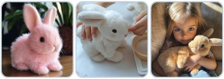 It’s described as an electrical plush toy with lifelike actions such as hopping, twitching and ear wiggling, powered by an internal motor.